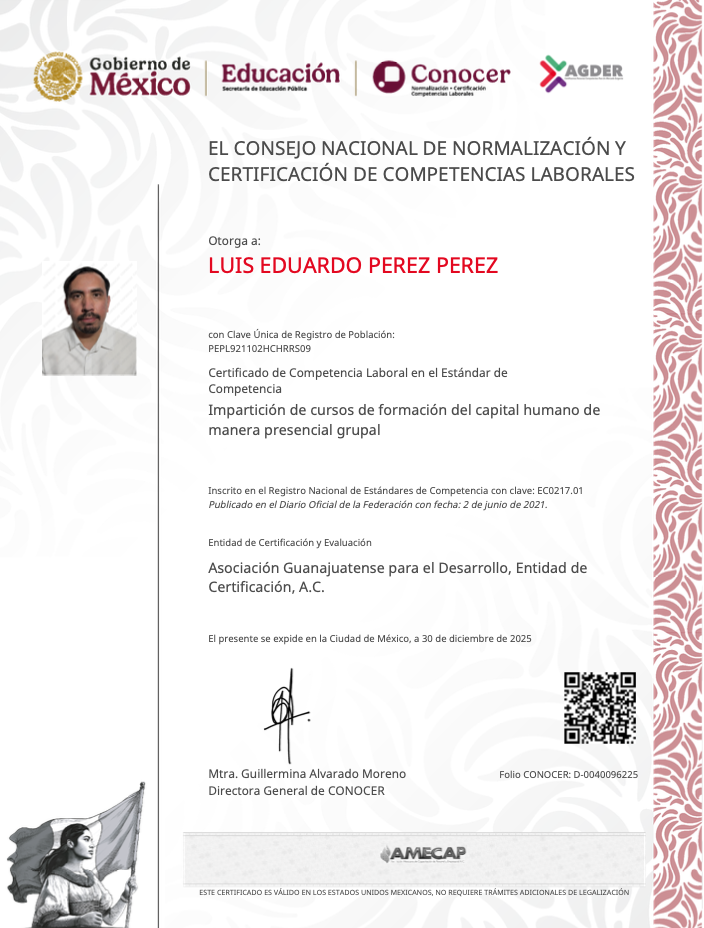Impartición de cursos de formación del capital humano de manera presencial grupal.