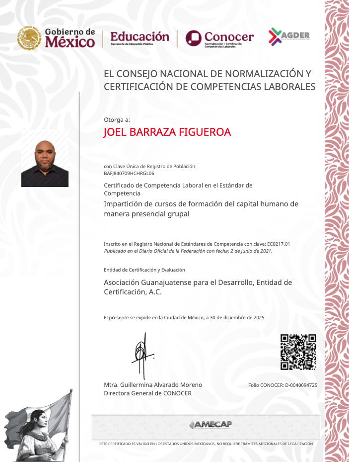 Impartición de cursos de formación del capital humano de manera presencial grupal.